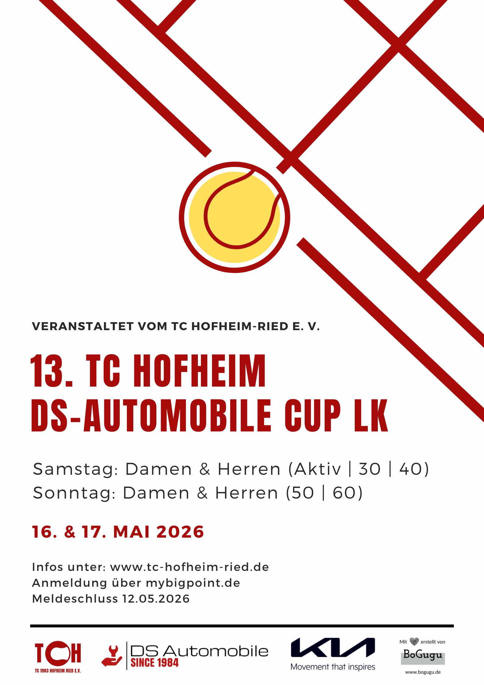 Auch in diesem Jahr freuen wir uns zusammen mit unserem langjährigen Sponsor DS Automobile eines der beliebtesten LK-Turniere der Region auszurichten. Neben Abziehservice und Kuchenverkauf gibt es eine super Turnierorganisation und kalte Getränke. Meldet euch an oder kommt zum Zuschauen vorbei und genießt ein paar schöne Stunden auf der Anlage.